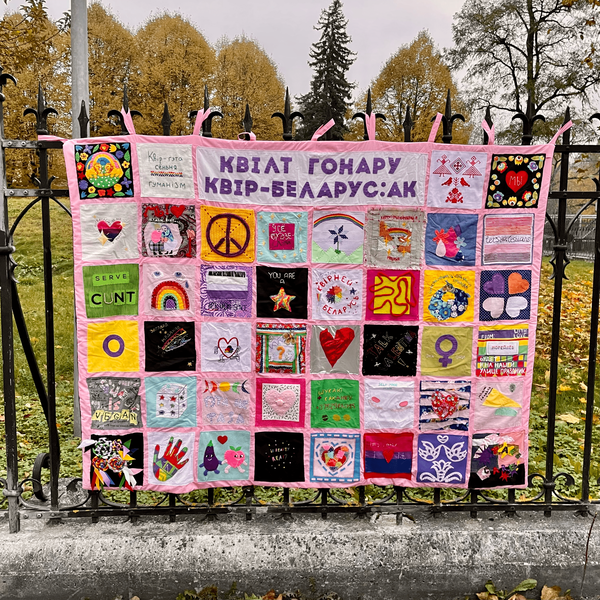 Belarusian Quilt of Queer Pride created as a result of 3 offline workshops in Warsaw, Vilnius and Minsk organised by Prismatica, our project partner from Belarus.